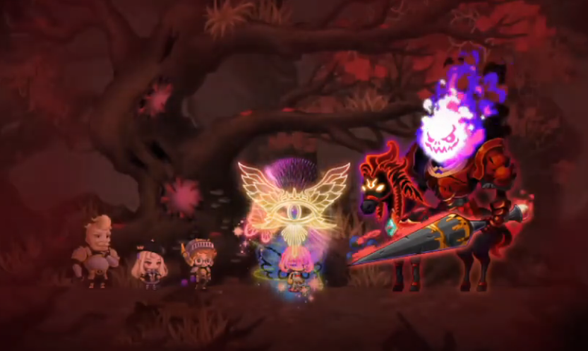 Just then, he heard the strange sound of metal scraping on metal, with Enneth noting that he also heard the sound of horse hooves. As the group’s vision turned a blurry red, the Headless Horseman appeared, laughing. The traveler immediately felt the same sense of fear that they had felt during their first mission to the forest with Becky as they, as well as the Afinas Knights, found themselves unable to move, paralyzed by fear. As the traveler desperately attempted to will themselves to move, Garnet called upon the divine protection of Afinas, breaking them free of the mysterious force.