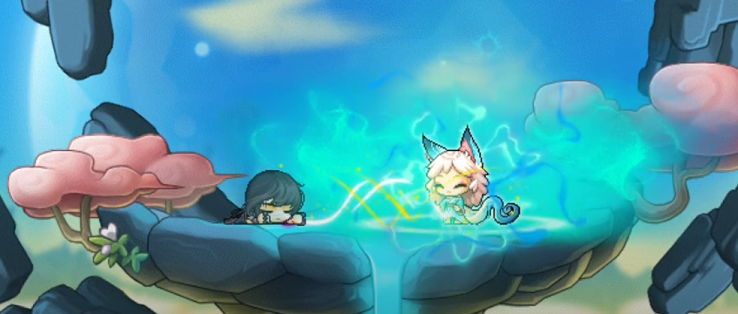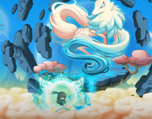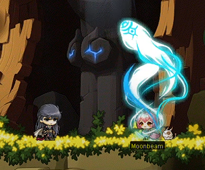 Moonbeam replied that she had never heard of either of those terms and explained that he was at the home of the Pointy-Ear Foxes. The hero then noticed Moonbeam’s strange animal features, as well as the fact that there were many moons in the sky, to which Moonbeam told him that there were always many moons in the skies of Grandis, causing the hero to realize that he was somewhere completely different from Maple World.
