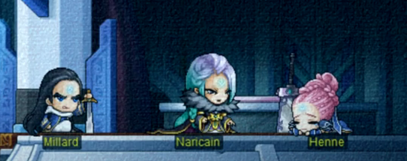 Meanwhile, Naricain laughed that neither Millard nor Henne could defeat him and promised to end things if they told him where the Antellion was. When they refused, Naricain unleashed powerful dark magic that the traveler struggled to resist through the simulation. Realizing that Millard would never tell him willingly, Naricain threatened to kill Henne, causing Millard to begrudgingly reveal that the Antellion was on Maple World. Satisfied, Naricain allowed his two siblings to live as he set off for to Maple World.