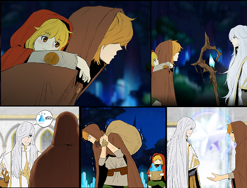 He then turned to Arin and asked the mercenary who she was. The mercenary explained that she had lost her family to the Omens, to which the White Mage noted that it was his first time learning the name of those dark creatures, adding that he heard little of the wider world in his isolation. The mercenary then asked the White Mage what such a renowned magician was doing alone in the forest.